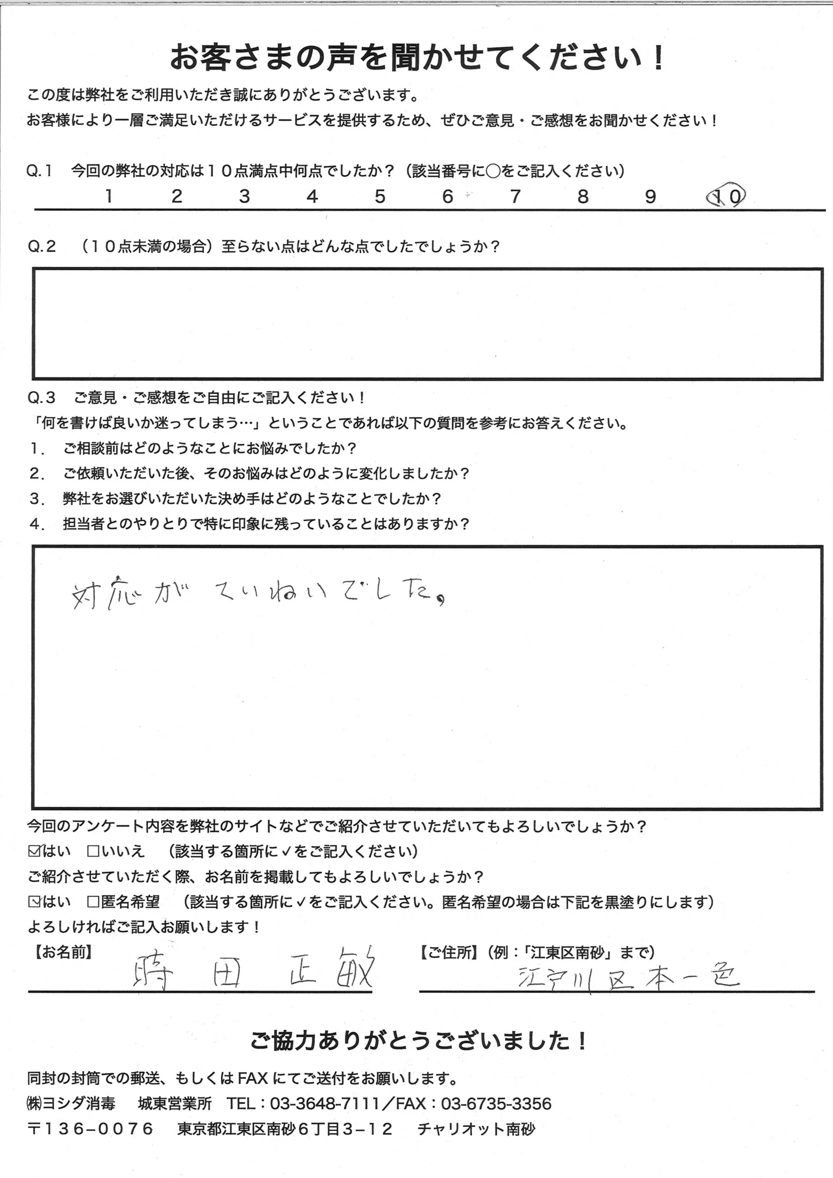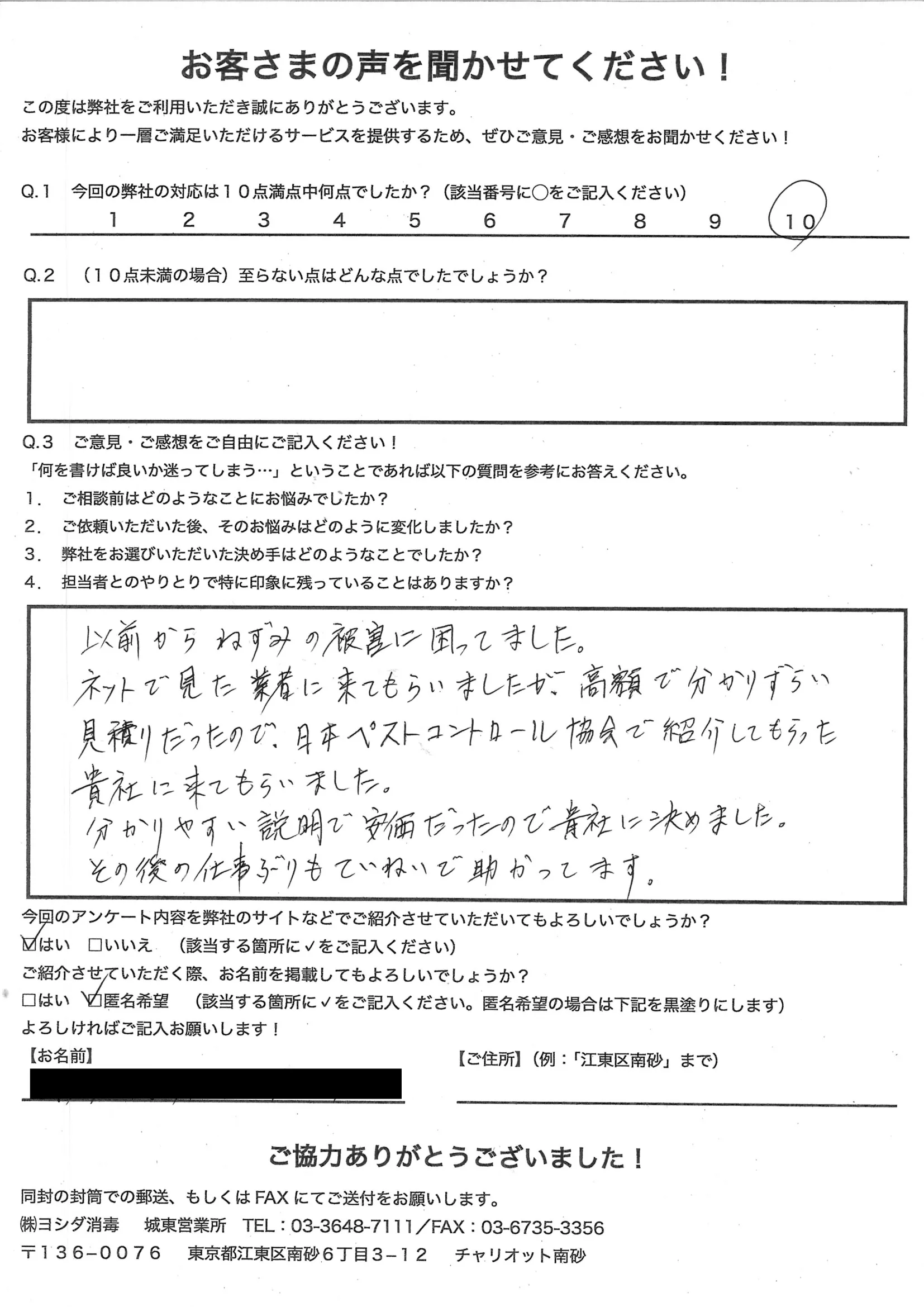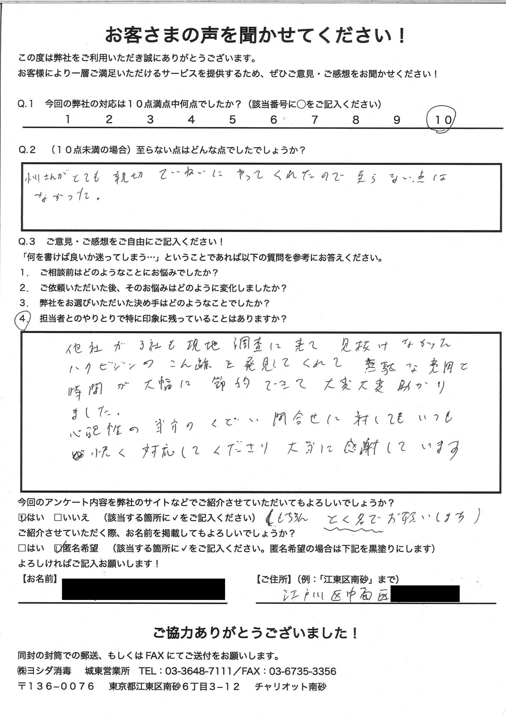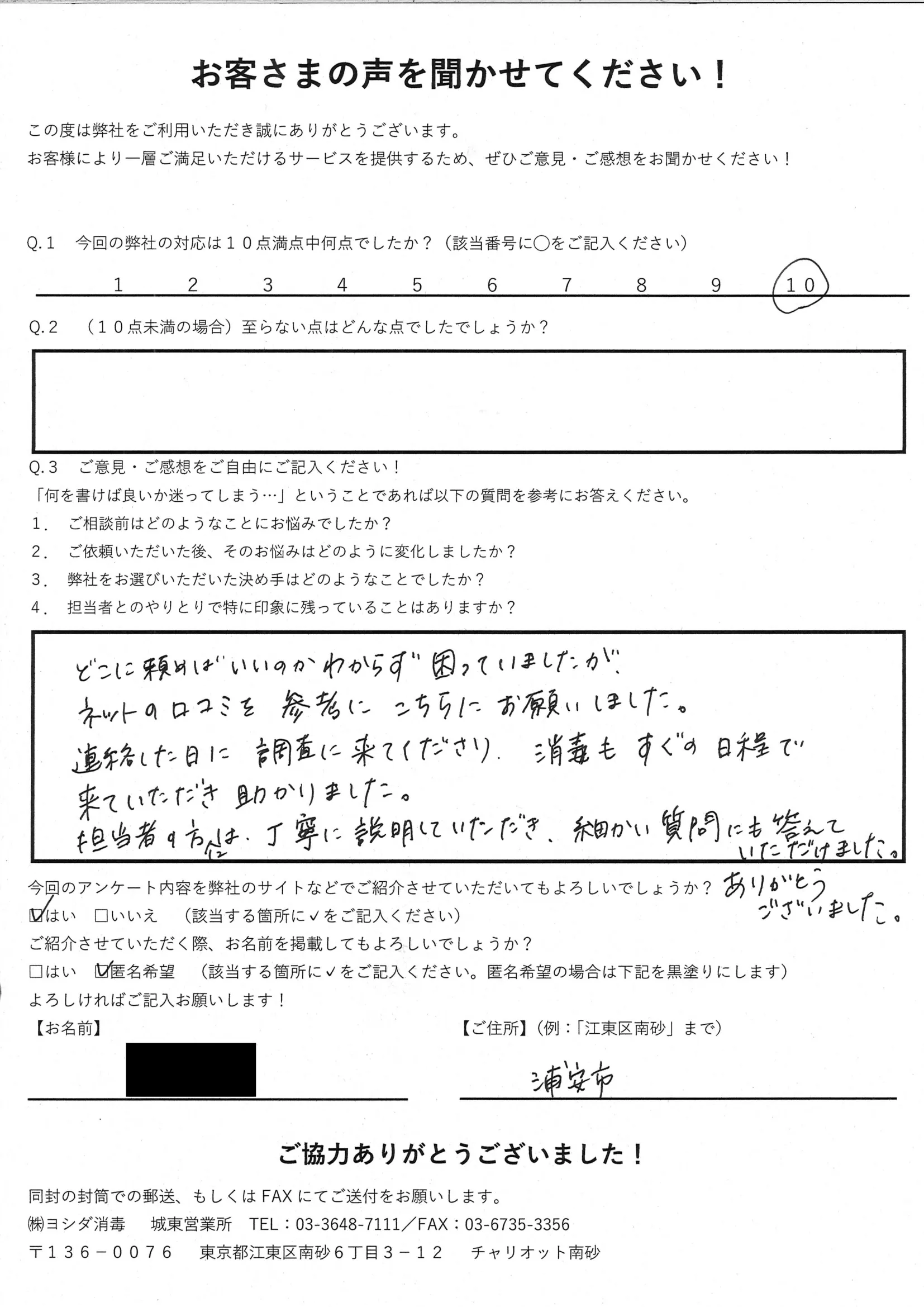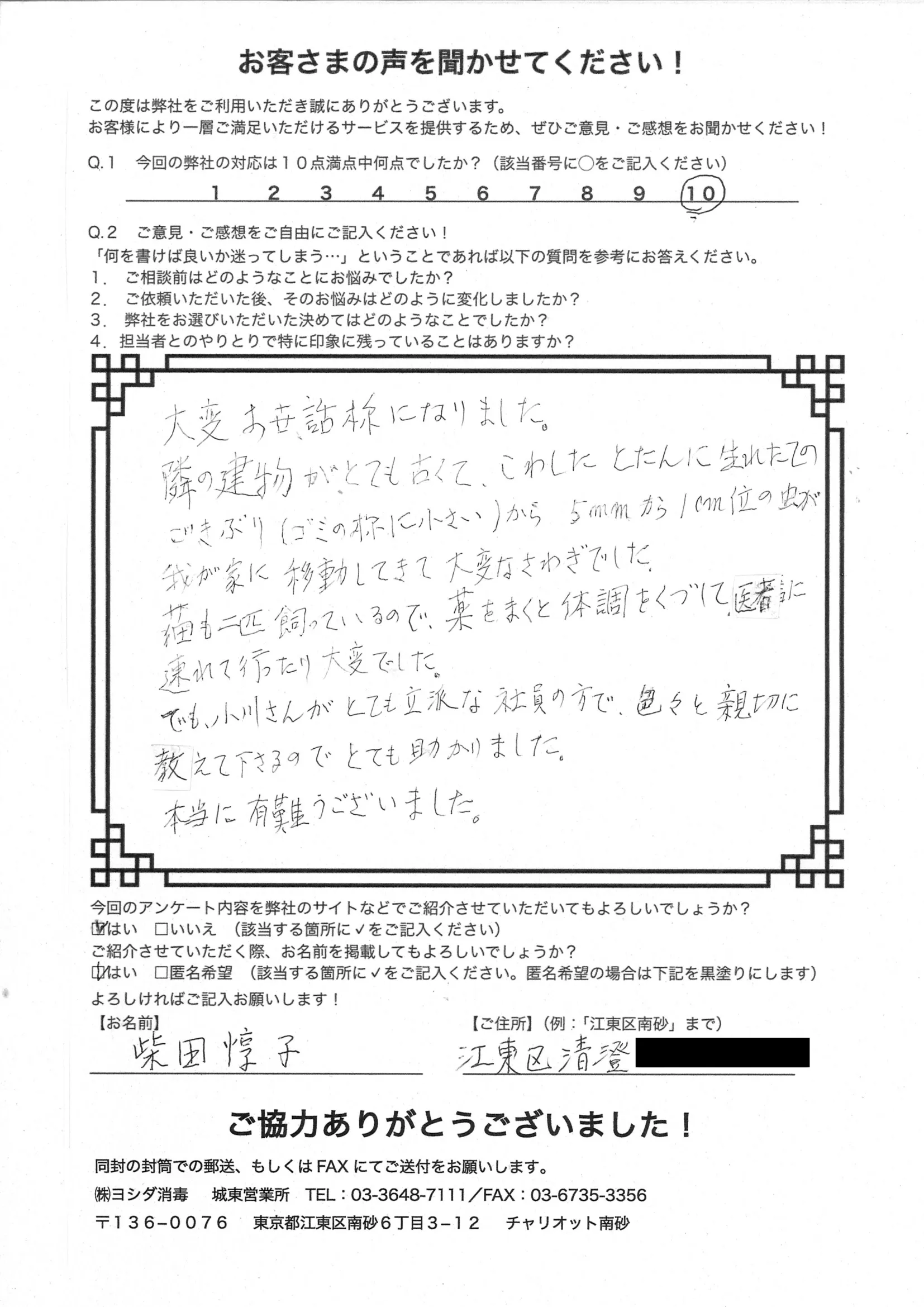 ゴキブリが発生して困っていましたが、親切に対応してもらいました