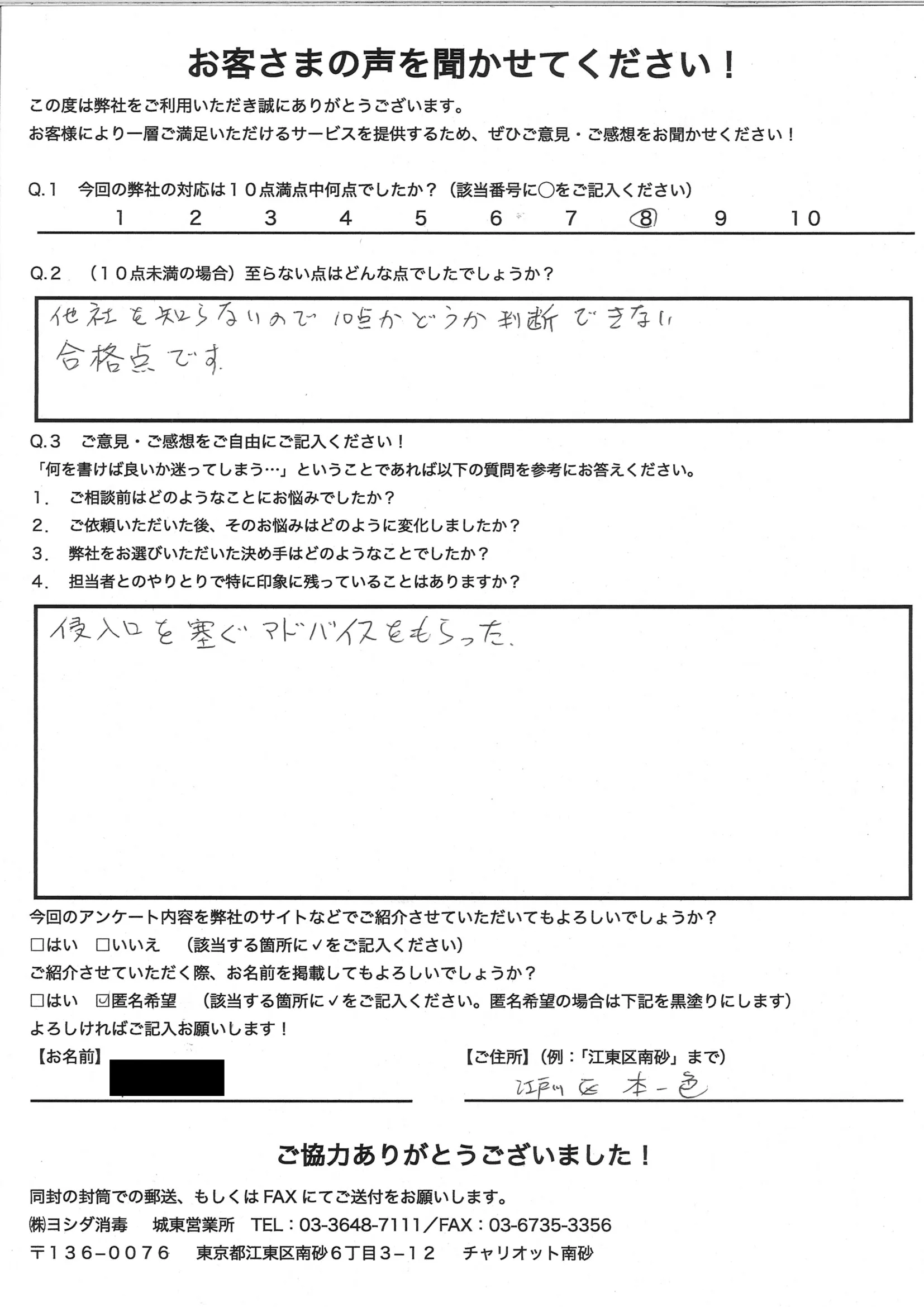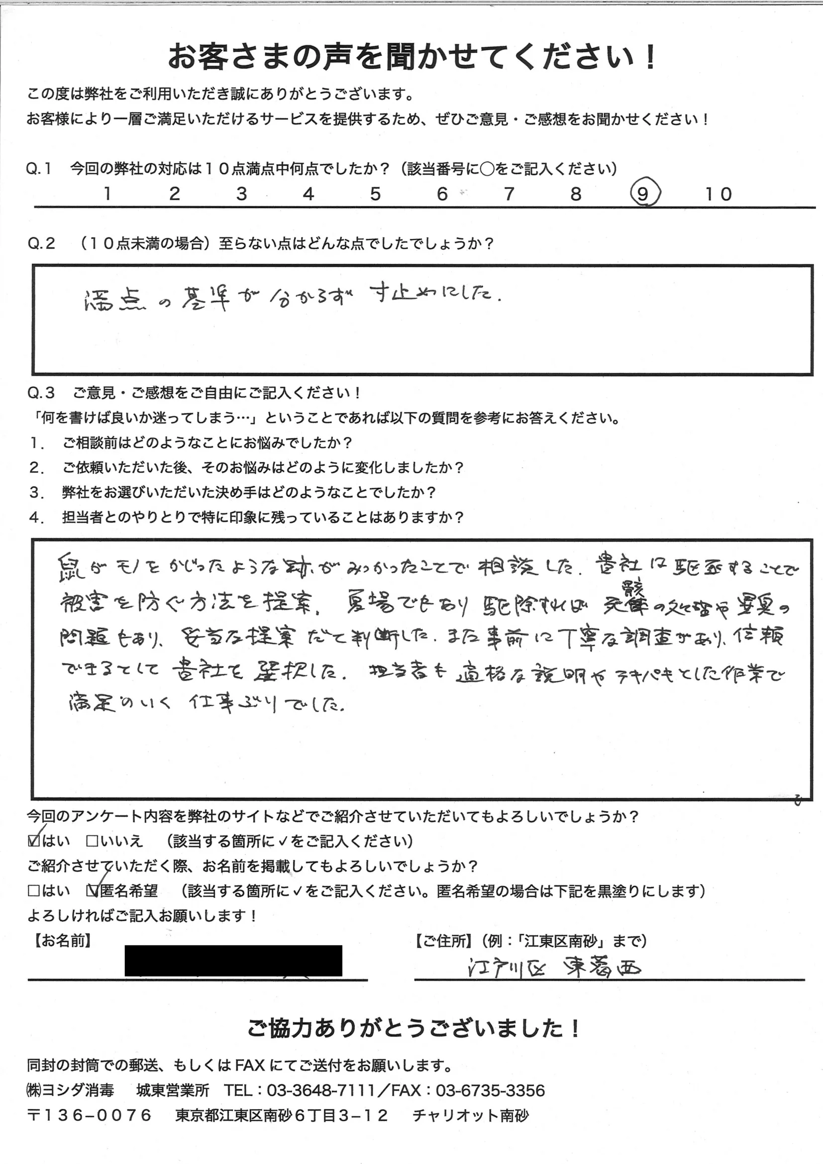 江東区の害虫・害獣の駆除ならおまかせ! ヨシダ消毒城東営業所