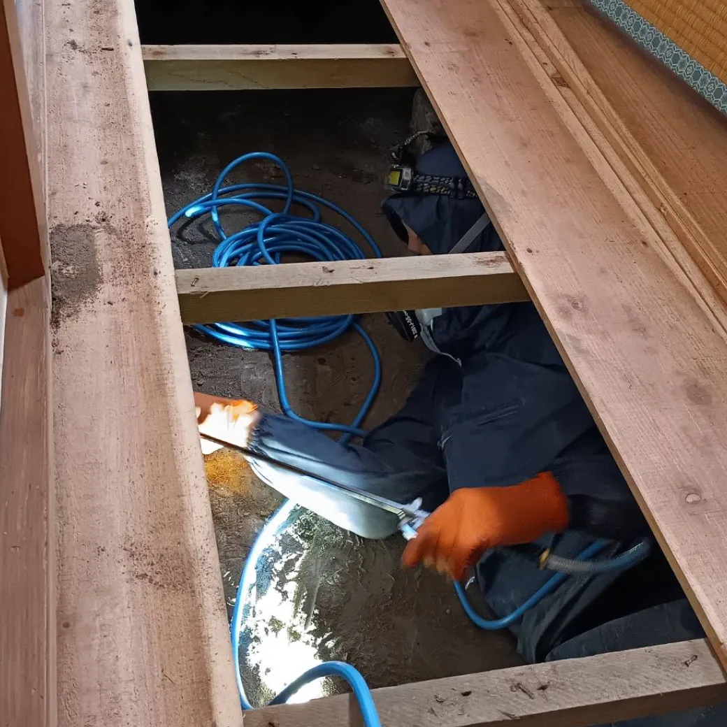床下の木材部分と土壌部分に薬剤を散布・注入し、